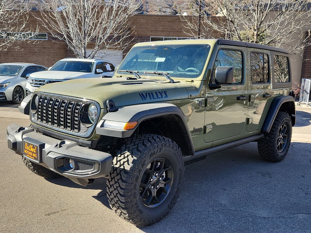 <b>Equipment</b><br>This model offers Android Auto for seamless smartphone integration. An off-road package is installed on the vehicle so you are ready for your four-wheeling best. Protect this 2026 Jeep Wrangler from unwanted accidents with a cutting edge backup camera system. This unit offers Apple CarPlay for seamless connectivity. The vehicle has automated speed control that adjusts to maintain a safe following distance, enhancing highway driving convenience. Bluetooth technology is built into this model, keeping your hands on the steering wheel and your focus on the road. The Jeep Wrangler's Forward Collision Warning system alerts the driver to potential front-end collisions, enhancing safety. This 2026 Jeep Wrangler has a V6, 3.6L high output engine. This model shines with a refined green finish. This 2026 Jeep Wrangler has four wheel drive capabilities. This 2026 Jeep Wrangler is equipped with a gasoline engine. The manual transmission in the vehicle will give you exceptional control of your driving experience.<br><br><b>Packages</b><br>Quick Order Package 24W Willys: 7 & 4 Pin Wiring Harness; Conventional Differential Front Axle; 4-Wheel Drive Swing Gate Decal; Black Grille; MOPAR All-Weather Floor Mats; Injection Molded Black Rear Bumper; Dana M210 Wide HD Tube Front Axle; Daytime Running Lamps LED Accents; Front LED Fog Lamps; LED Premium Reflector Headlamps; E-Locker Rear Axle; Corning Gorilla Glass; Security Alarm; 4.10 Rear Axle Ratio; 5. 675 lbs GVWR; Class II Receiver Hitch; Mold In Color Bumper W/Gloss Black; Advanced Brake Assist; Willy's Suspension; LT285/70R17C BSW Mud Terrain Tires; Automatic Headlamps; Deep Tint Sunscreen Windows; Off-Road Plus Mode; 17 X 7.5 Painted Black Wheels; Willys Hood Decal; Full Speed Forward Collision Warning Plus; Rock Protection Sill Rails; Power Heated Mirrors; Enhanced Adaptive Cruise Control; Auxiliary Switches; Dana M220 Wide Rear Axle; Molded in Color Rubicon Highline Flare; Premium Wrapped Steering Wheel; Sun Visors W/Illuminated Vanity Mirrors. Sky 1-Touch Power Top. 41. MOPAR Plastic Door Sill Guards. **Equipment listed is based on original vehicle build and subject to change. Please confirm the accuracy of the included equipment by calling the dealer prior to purchase.**<br><br><b>Additional Information</b><br>All prices exclude tax, title and license. *Berthod Advantage pricing includes discount, commonly applicable rebates and dealer handling.