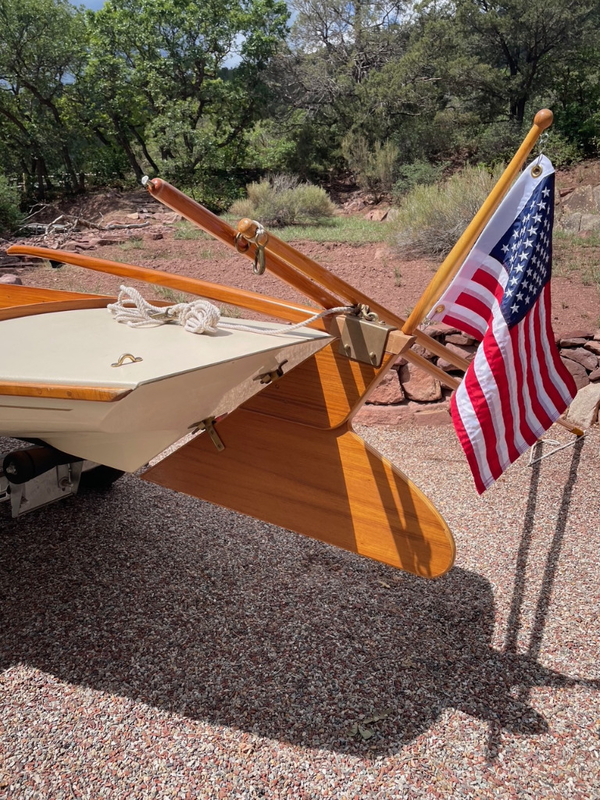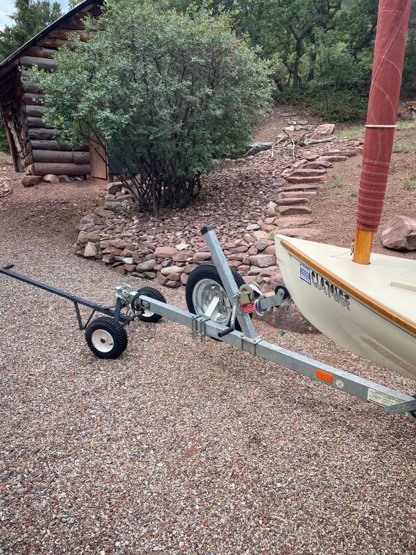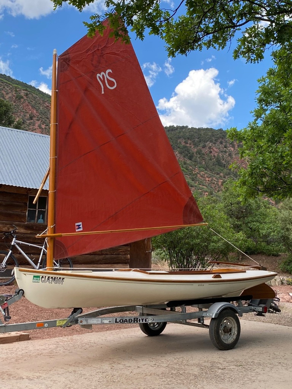Like new Melonseed Skift, fiberglass hull with under deck flotation, 10' mast, 62 sq.ft.sail area. Including never used second set mast & sail, canvas cover, hand trailer dolly, 18' Load Rite trailer, and Trailex U-Dolly for beach launching.
