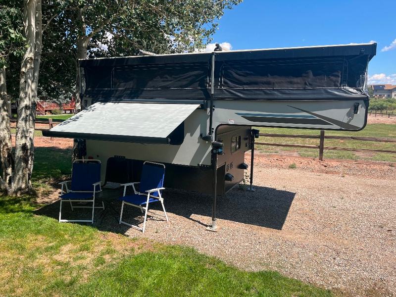 Like new camper. Many extras included. Reico electric roof jacks, solar, outside shower, rear entrance staris, queen size memory foam bed, flush toilet, Thule roof rack, 4 turnbuckles. Sleeps 3. Only used 18 hours. Located in Gypsum.