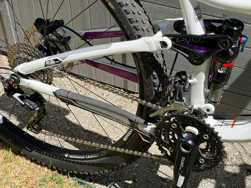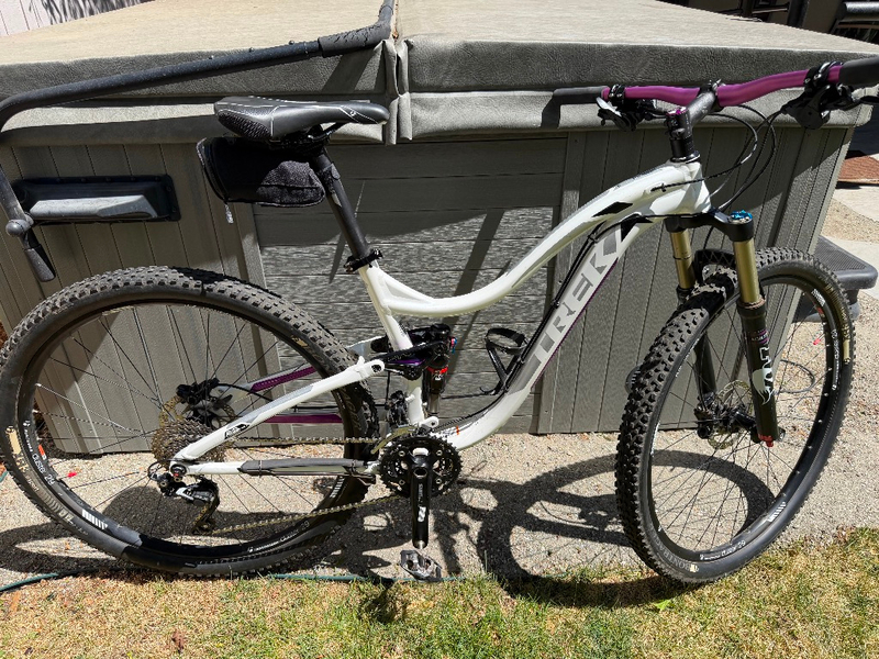 Super great condition! Lightweight Alpha Platinum frame, 29" Bontrager wheels with excellent tread, rear drive train/chain professionally cleaned 4/23/26, 120mm Fox suspension front & rear, Shimano drive train with SLX derailler, Shimano cleat pedals, hydraulic disc brakes. Purchased 2014 $2300. Hardly used due to medical reasons. Like new!