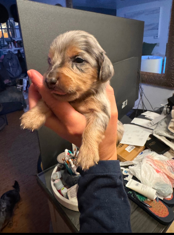 Miniature dachshunds, 6 girls 2 boys ready to go home December 20th, long hair all first shots, Isabella dapple, blues, greys and creams. Asking $2,700.00 with a $400.00 non refundable deposit. 970-390-2773