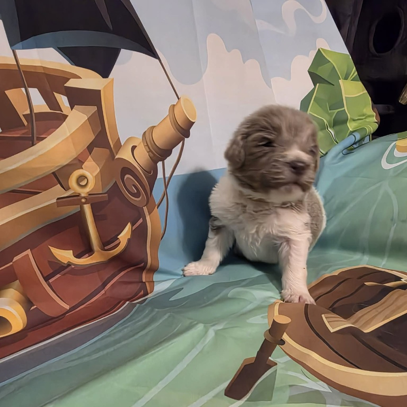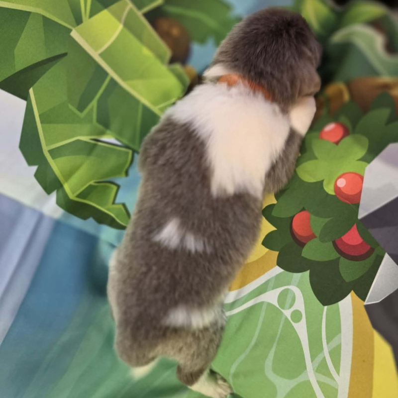 About the Parents: Ashoka, the dam, is gray AKC registered Newfoundland. She is joyful, quirky, shy at first, but very affectionate once she opens up. Yoda, the Sire, is also a gray AKC registered Newfoundland. He loves his snuggles and is extremely playful with a side of goofiness. They are raised, as well as the puppies, on a farm around other dogs, birds, pigs, and other farm animals. If you would like to know more about that litter and their puppies, please let us know.