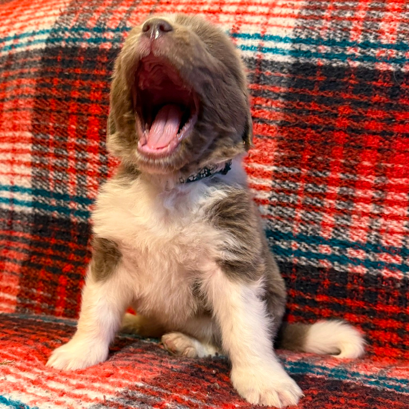 About the Parents: Ashoka, the dam, is gray AKC registered Newfoundland. She is joyful, quirky, shy at first, but very affectionate once she opens up. Yoda, the Sire, is also a gray AKC registered Newfoundland. He loves his snuggles and is extremely playful with a side of goofiness. They are raised, as well as the puppies, on a farm around other dogs, birds, pigs, and other farm animals. If you would like to know more about that litter and their puppies, please let us know.
