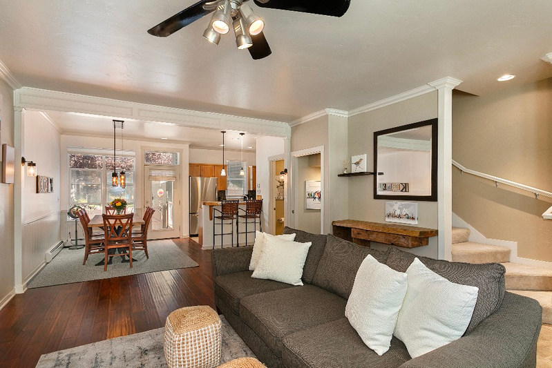 Beautifully maintained 3-bedroom + den, 3.5-bathroom home with 1,809 SF in the heart of Eagle Ranch. Features open-concept living, fresh exterior and interior paint, a deck and fenced yard, and a 1-car garage. Upstairs includes a primary suite, second bedroom, and 2 full baths. Lower level offers a den, 3rd bedroom, and ¾ bath—perfect for guests or a home office. Walking distance to parks, trails, schools, and downtown Eagle Ranch.