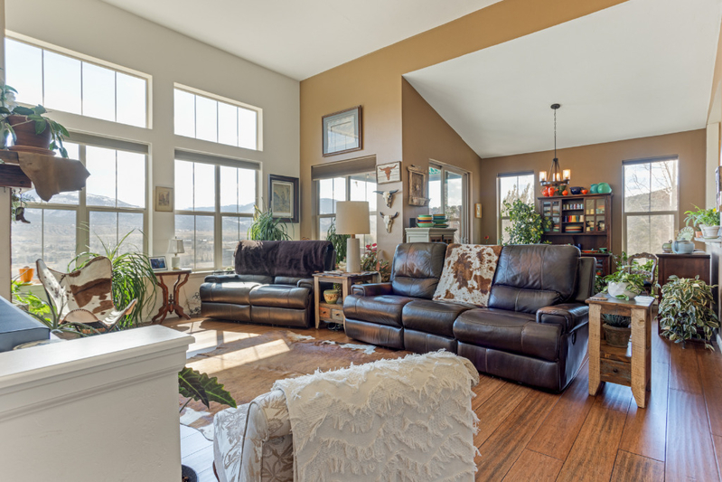 Stunning 4-Bedroom, 4-Bathroom Single-Family Home with Mountain and Golf Course Views. This exceptional home features vaulted ceilings and expansive windows that flood the space with natural light, offering breathtaking views of the surrounding mountains and the lush golf course below. The main level boasts the spacious primary bedroom, ensuring convenience and privacy and comfortable great room with a gas fireplace and engineered bamboo flooring. The functional kitchen offers beautiful quartz countertops, stainless steel appliances, a double oven, and a pantry for ample storage.