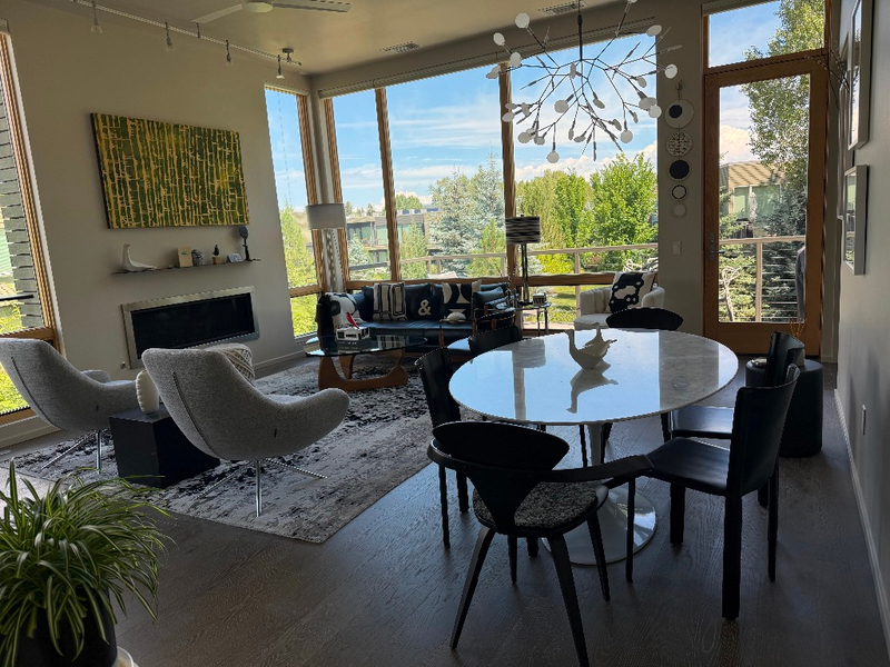 Beautifully appointed 1314 sq ft condo. Corner unit. Floor to ceiling windows with top down bottom up window coverings. Gas fire place. Outdoor deck with grill. Chefs kitchen with wine cooler. 2 parking spaces in heated garage with storage and bike room.