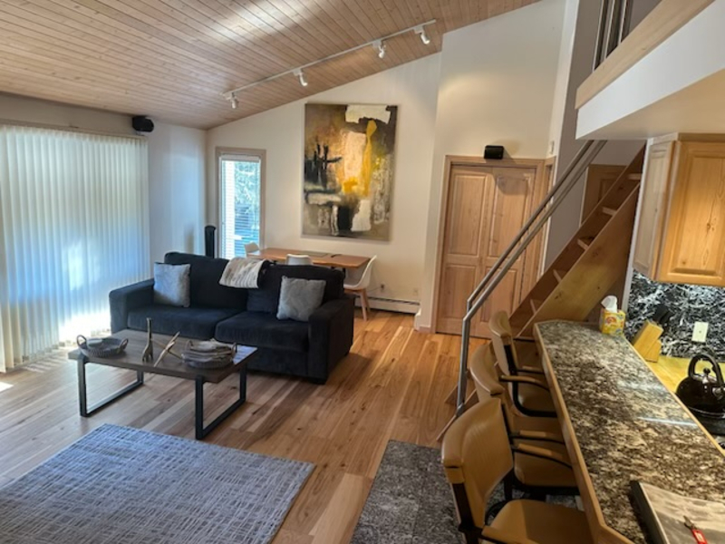 South facing with views of Aspen Mt off of the back deck. Gavilon studio with loft, 1 1/2 bath 723 sq. ft. total. Brand new wood floors and a new staircase with double hand rails going up to the loft. Furnished and turn-key. Reserve parking space for resident owner. Common laundry, owners private large ski locker. No term limits on rentals. Resident owner dogs allowed. MLS #185676 Nancy Stover nancystover@live.com