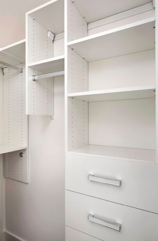 Walk-in Closet in Bedroom with California Closet System Including Shelving & Drawers