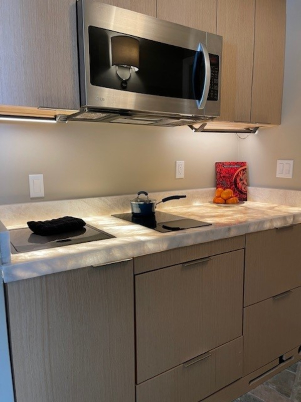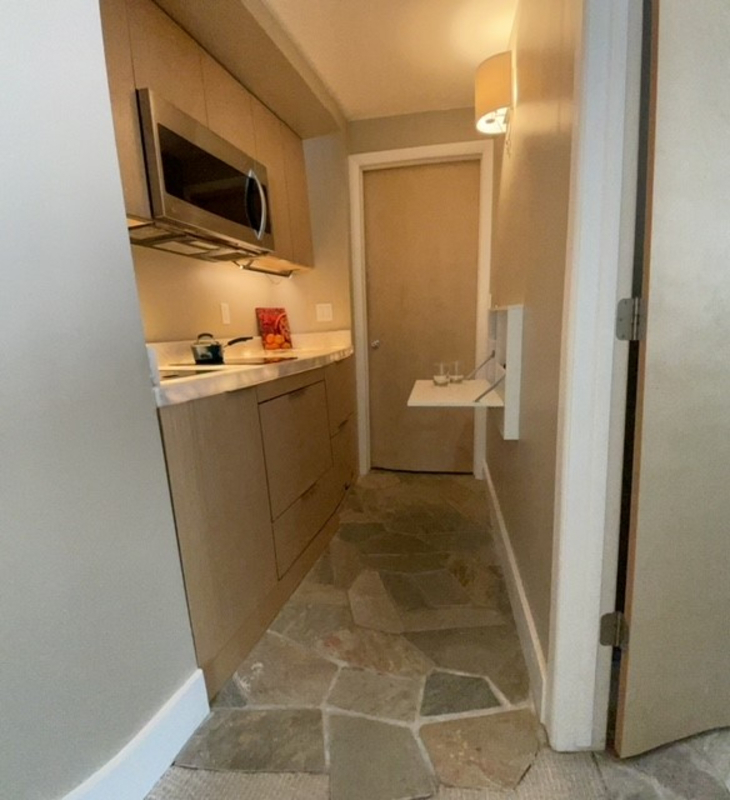Luxurious Edwards high-end compact studio with 3 closets and lots of storage. The kitchen has refrigerator, freezer drawers, dishwasher, convection/microwave oven, 2 burner cooktop, and collapsible sink with disposal folds down. The stone under-lit countertop turns flat for multipurpose use. The double vanity with natural stone bathroom has a steam shower and windows for sunlight. The bedroom has lots of storage with 3 closets, its own private entrance with lots of southern sun, the bed converts from a Murphy bed to an office or can all go up to be the perfect yoga space. Parking, laundry available, utilities included. Furnished. Accessible to public transit. Local gym use included. NS, NP, 1 person preferred.