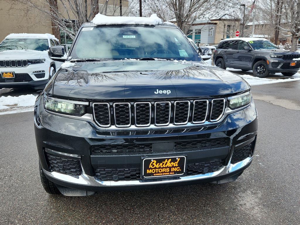<b>Equipment</b><br>The installed navigation system will keep you on the right path. The Jeep Grand Cherokee L features a hands-free Bluetooth phone system. This vehicle offers Apple CarPlay for seamless connectivity. Start this vehicle from inside with remote start. This model has automated speed control that adjusts to maintain a safe following distance, enhancing highway driving convenience. The vehicle offers Android Auto for seamless smartphone integration. The leather seats in the Jeep Grand Cherokee L are a must for buyers looking for comfort, durability, and style. See what's behind you with the back up camera on this mid-size suv. This mid-size suv is pure luxury with a heated steering wheel. An off-road package is equipped on this unit. Enjoy the convenience of the power liftgate on this Jeep Grand Cherokee L. Set the temperature exactly where you are most comfortable in this 2025 Jeep Grand Cherokee L . The fan speed and temperature will automatically adjust to maintain your preferred zone climate.<br><br><b>Packages</b><br>Luxury Tech Group II: Power Tilt/telescope Steering Column; Integrated Off-Road Camera; Surround View Camera System; Rain Sensitive Windshield Wipers; ParkSense Front/rear Park Assist with Stop; Passive Entry - Front/rear Doors. Liftgate; Wireless Charging Pad; Rear Back Up Camera Washer; Ventilated Front Seats; Auto Dim Exterior Driver Mirror; Capri Leatherette with Axis II Seats; 2nd Row Manual Window Shades; Intersection Collision Assist System; Rearview Autodim Digital Display Mirror; Memory Steering Column. Quick Order Package 23E. Trailer Tow Package: Rear Load Leveling Suspension; Full Size Spare Tire; 7 and 4 Pin Wiring Harness; Dual Exhaust Tips; Heavy Duty Engine Cooling; 18 Full-Size Steel Spare Wheel; Automatic Headlamp Leveling System; Trailer Hitch Zoom; 220 Amp Alternator; Class IV Receiver Hitch. Dual Pane Panoramic Sunroof. Diamond Black Crystal PC. **Equipment listed is based on original vehicle build and subject to change. Please confirm the accuracy of the included equipment by calling the dealer prior to purchase.**<br><br><b>Additional Information</b><br>All prices exclude tax, title and license. *Berthod Advantage pricing includes discount, commonly applicable rebates and dealer handling.