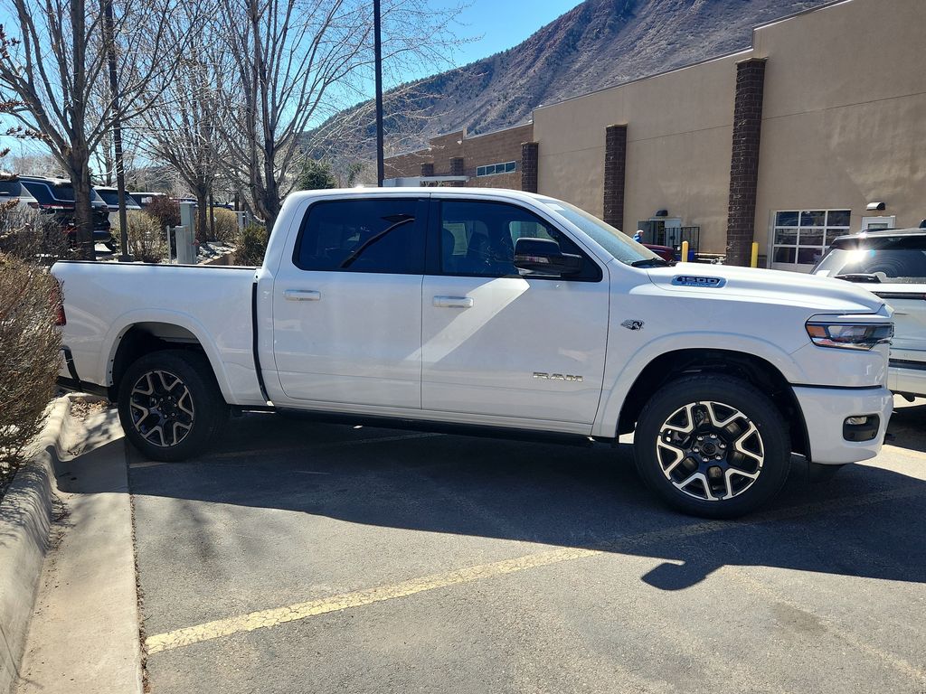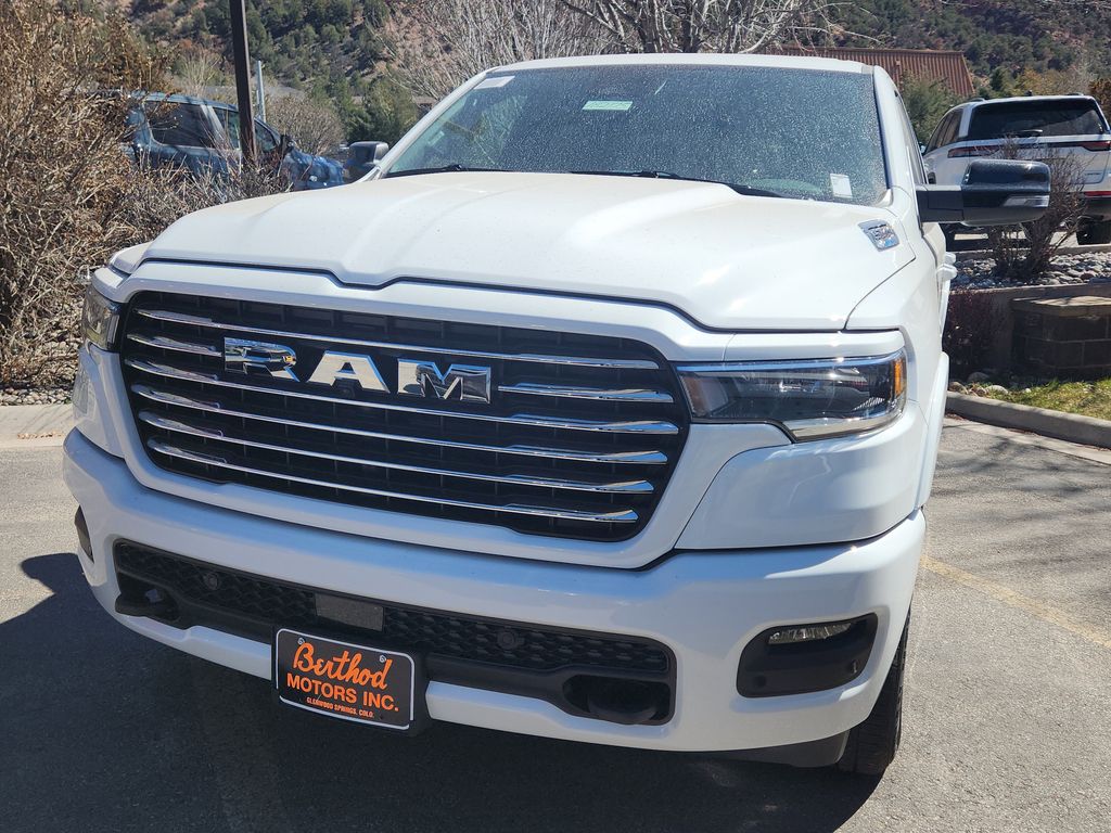 <b>Equipment</b><br>Protect this Ram 1500 from unwanted accidents with a cutting edge backup camera system. An off-road package is installed on the vehicle so you are ready for your four-wheeling best. Never get into a cold vehicle again with the remote start feature on this 1/2 ton pickup. The vehicle comes equipped with Android Auto for seamless smartphone integration on the road. This unit is equipped with the latest generation of XM/Sirius Radio. Bluetooth technology is built into this vehicle, keeping your hands on the steering wheel and your focus on the road. Enjoy your music even more with the premium sound system in it. It has auto-adjust speed for safe following. This Ram 1500's Forward Collision Warning feature alerts drivers to potential front-end collisions. This unit is pure luxury with a heated steering wheel. Apple CarPlay: Seamless smartphone integration for this model - stay connected and entertained on the go!<br><br><b>Packages</b><br>Quick Order Package 27H Laramie. Laramie Level 2 Equipment Group: Off-Road Information Pages; SiriusXM Radio Service; USB Host Flip; Rain Sensitive Windshield Wipers; 14.4 Touchscreen Display; Integrated Center Stack Radio; Front Passenger Interactive Display; Integrated Voice Command with Bluetooth; Connectivity - US/Canada; Uconnect 5 Nav with 14.4 Display; GPS Navigation; 4G LTE Wi-Fi Hot Spot; Harman/kardon 19 Speaker Premium Sound; SiriusXM with 360L; Connected Travel and Traffic Services; Cluster 12 TFT Color Display; Power Tailgate; SiriusXM Radio Service; USB Host Flip; Rain Sensitive Windshield Wipers; 14.4 Touchscreen Display; Integrated Center Stack Radio; Front Passenger Interactive Display; Integrated Voice Command with Bluetooth; Connectivity - US/Canada; Uconnect 5 Nav with 14.4 Display; GPS Navigation; 4G LTE Wi-Fi Hot Spot; Harman/kardon 19 Speaker Premium Sound; SiriusXM with 360L; Connected Travel and Traffic Services; Cluster 12 TFT Color Display; Power Tailgate. Bed Utility Group: MOPAR Spray in Bedliner; Truck Bed Cargo Divider; MOPAR 4 Adjustable Cargo Tie-Down Hooks; Exterior 115V AC Outlet; MOPAR Deployable Bed Step Center Mount; MOPAR Spray in Bedliner; MOPAR 4 Adjustable Cargo Tie-Down Hooks; Exterior 115V AC Outlet; MOPAR Deployable Bed Step Center Mount; MOPAR Spray in Bedliner; Truck Bed Cargo Divider; MOPAR Deployable Bed Step; MOPAR 4 Adjustable Cargo Tie-Down Hooks; Exterior 115V AC Outlet; MOPAR Spray in Bedliner; MOPAR Deployable Bed Step; MOPAR 4 Adjustable Cargo Tie-Down Hooks; Exterior 115V AC Outlet. Laramie Preferred Package: Accent Color Premium Power Mirrors; Exterior Mirrors with Supplemental Signals; Power Deployable Running Boards; Exterior Mirrors Courtesy Lamps; RAM Grille Badge - Chrome; Auto Power-Folding Mirrors; Grille Surround 3 Body Color Tex 4 Chrome; Exterior Mirrors with Heating Element; Auto Dim Exterior Driver Mirror; Trailer Brake Control; Exterior Mirrors with Memory; Tow Hooks; Body Color Front Bumper; Convex Wide-Angle Exterior Mirror Insert; Dual-Pane Panoramic Sunroof; Body Color Rear Bumper with Step Pads; Black Painted Exterior Mirrors Caps. Dual-Pane Panoramic Sunroof. Power Deployable Running Boards. Anti-Spin Differential Rear Axle. 33 Gallon Fuel Tank. Trailer Brake Control. MyFlexCare Service Plan. MOPAR Front and Rear Rubber Floor Mats. 3.92 Rear Axle Ratio. **Equipment listed is based on original vehicle build and subject to change. Please confirm the accuracy of the included equipment by calling the dealer prior to purchase.**<br><br><b>Additional Information</b><br>All prices exclude tax, title and license. *Berthod Advantage pricing includes discount, commonly applicable rebates and dealer handling.