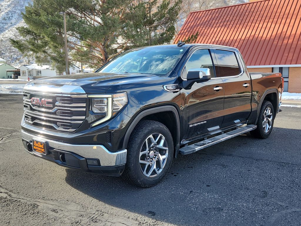 <b>Vehicle Details</b><br>Our 2023 GMC Sierra 1500 SLT Crew Cab 4X4 with the Premium Pack is rugged, refined, and ready to dominate your daily challenges in Onyx Black! Powered by a 5.3 Liter V8 supplying 355hp to a 10 Speed Automatic transmission for Professional Grade pulling. This Four Wheel Drive truck returns nearly 20mpg on the highway and welcomes our Premium Pack for exciting upgrades. The package adds a high-capacity suspension, chrome assist steps, and 20-inch wheels to LED lighting, a tow hitch receiver, a MultiPro tailgate, and chrome bumpers with a rear CornerStep.<br><br>A comfortable command post, our SLT cabin has our Premium Pack for heated/ventilated leather power front seats, a heated-wrapped power steering wheel, a power-sliding rear window, a reconfigurable front console, and Bose audio. Our impressive Sierra also treats you to dual-zone automatic climate control, remote start, keyless access/ignition, and intelligent infotainment with a 12.3-inch driver display, a 13.4-inch touchscreen, Google Built-In, wireless Android Auto®/Apple CarPlay®, voice control, WiFi compatibility, and Bluetooth® for satisfying digital convenience.<br><br>For safety's sake, GMC supplies intelligent driver assistance from automatic braking, lane-keeping assistance, an HD rearview camera, forward collision warning, lane departure warning, pedestrian detection, hill-start assist, and more. With all that, our Sierra 1500 SLT is for serious truck lovers. Save this Page and Call for Availability. We Know You Will Enjoy Your Berthod Motors Test Drive Towards Ownership!<br><br><b>Equipment</b><br>You'll never again be lost in a crowded city or a country region with the navigation system on this 1/2 ton pickup. The GMC Sierra offers Apple CarPlay for seamless connectivity. Bluetooth technology is built into this 2023 GMC Sierra 1500, keeping your hands on the steering wheel and your focus on the road. The leather seats in this vehicle are a must for buyers looking for comfort, durability, and style. Start the vehicle from inside with remote start. Keep your hands warm all winter with a heated steering wheel in this vehicle . This 2023 GMC Sierra 1500's Lane Departure Warning helps keep you in your lane. Lane Keep Assist in this 2023 GMC Sierra 1500 helps maintain safe driving by gently steering to stay within the lane. Protect it from unwanted accidents with a cutting edge backup camera system. This GMC Sierra offers Android Auto for seamless smartphone integration.<br><br><b>Additional Information</b><br>All prices exclude tax, title and license. *Berthod Advantage pricing includes discount, commonly applicable rebates and dealer handling.