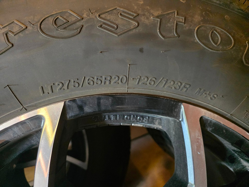 Firestone Winterforce LT 275/65R20 mounted and balanced. I purchased these new last October ($2666 plus mounting) and put a total of about 200 miles on them before I sold my R1T. HALF PRICE