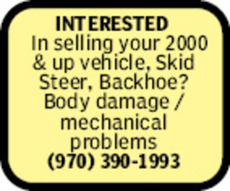 INTERESTED In selling your 2000 & up vehicle, Skid Steer, Backhoe? Body damage /mechanical problemsAvon(970) 390-1993
